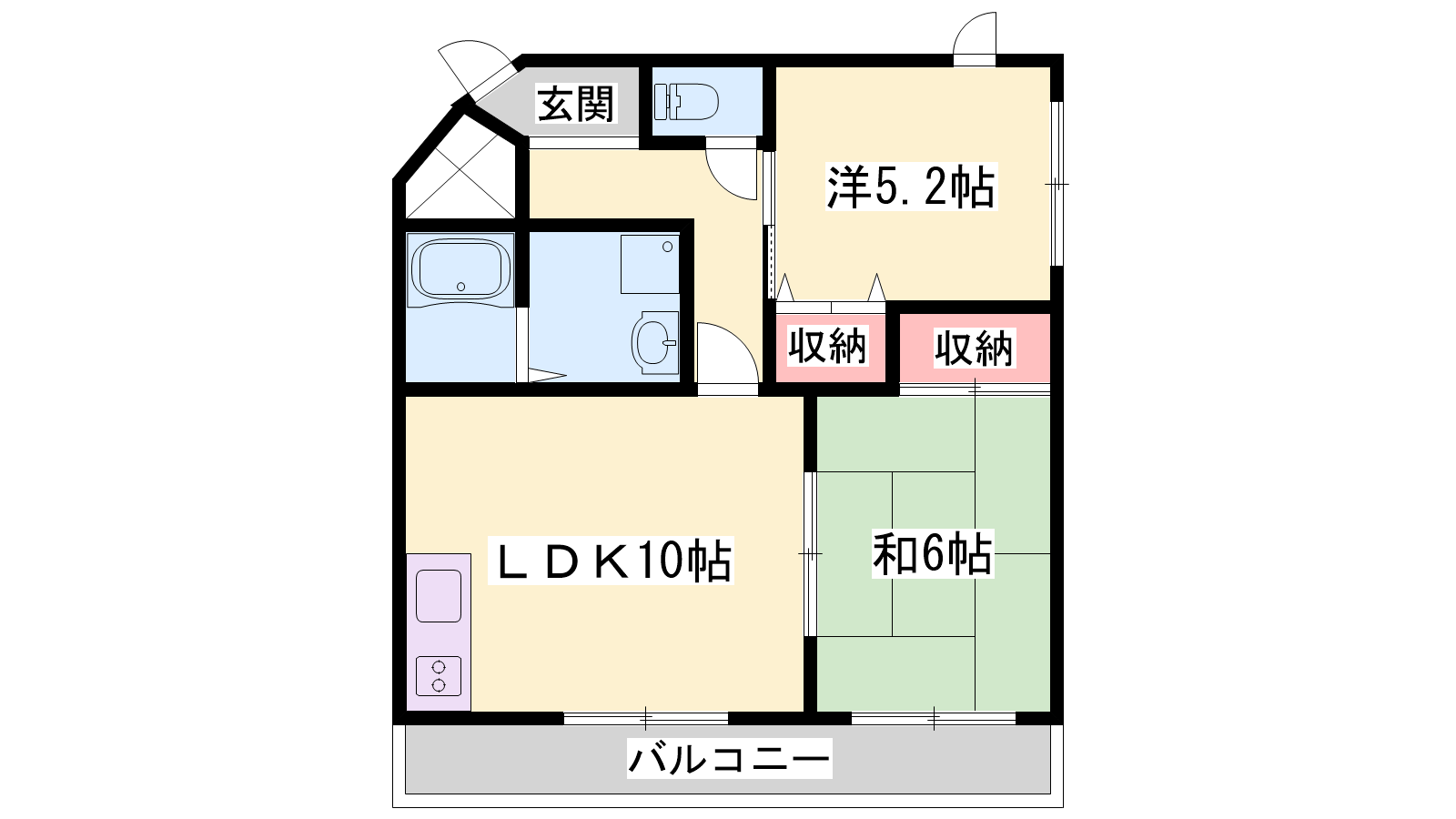 - LDK10帖、洋室5.2帖、和室6帖