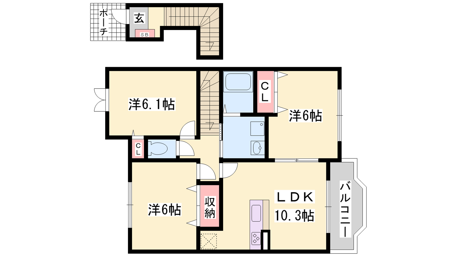 - LDK10.3帖、洋室6帖、洋室6帖、洋室6.1帖