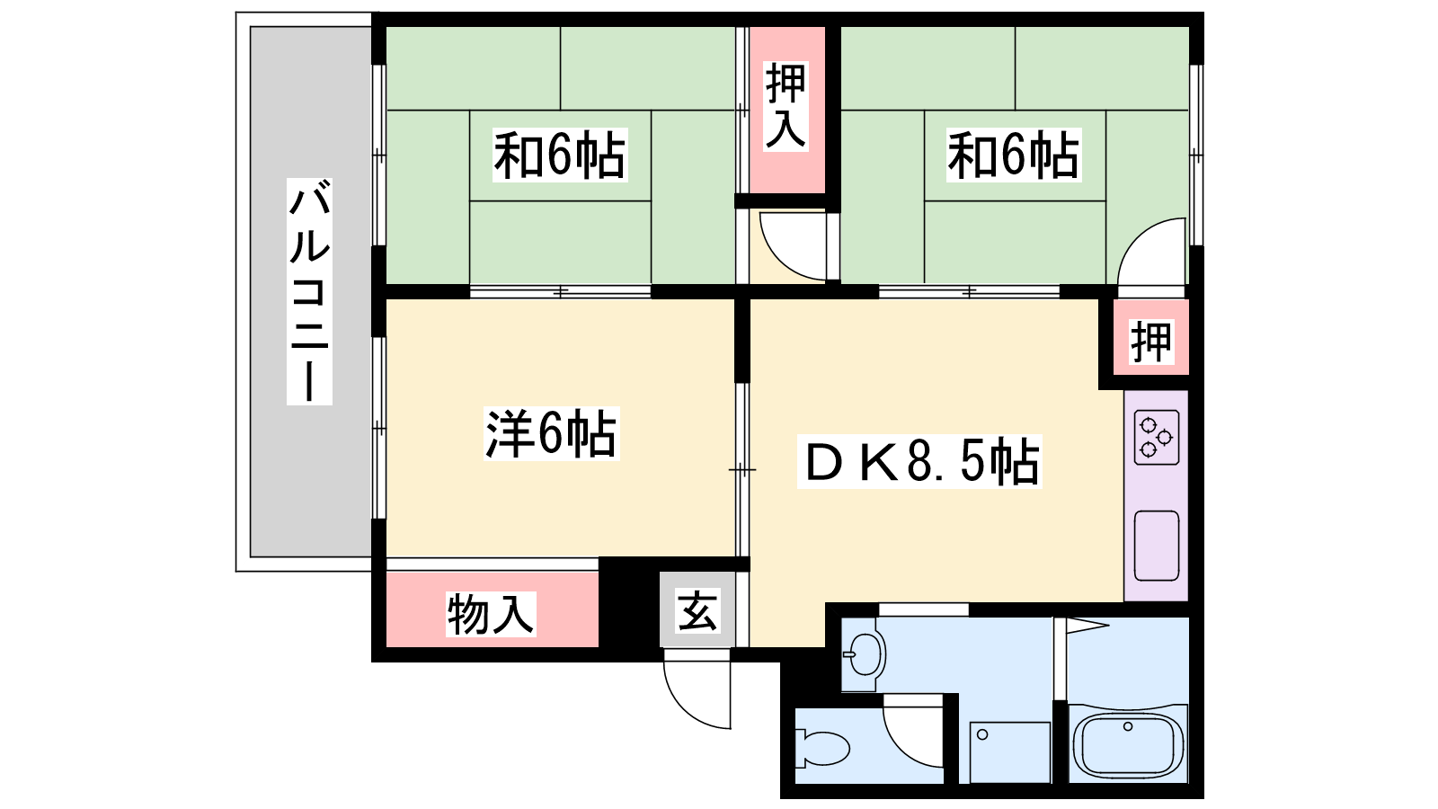 - LDK8.5帖、洋室6帖、和室6帖、和室6帖