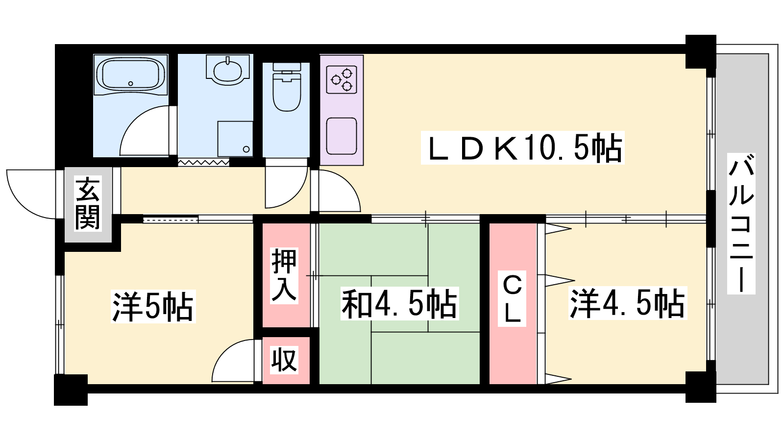 - LDK10.5帖、洋室5帖、洋室4.5帖、和室4.5帖