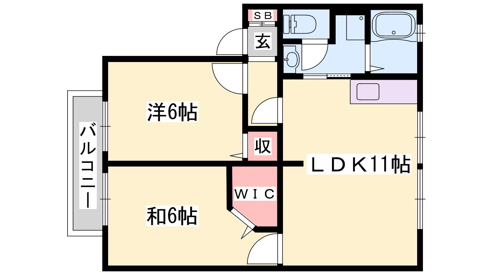 - LDK11帖、洋室6帖、洋室6帖