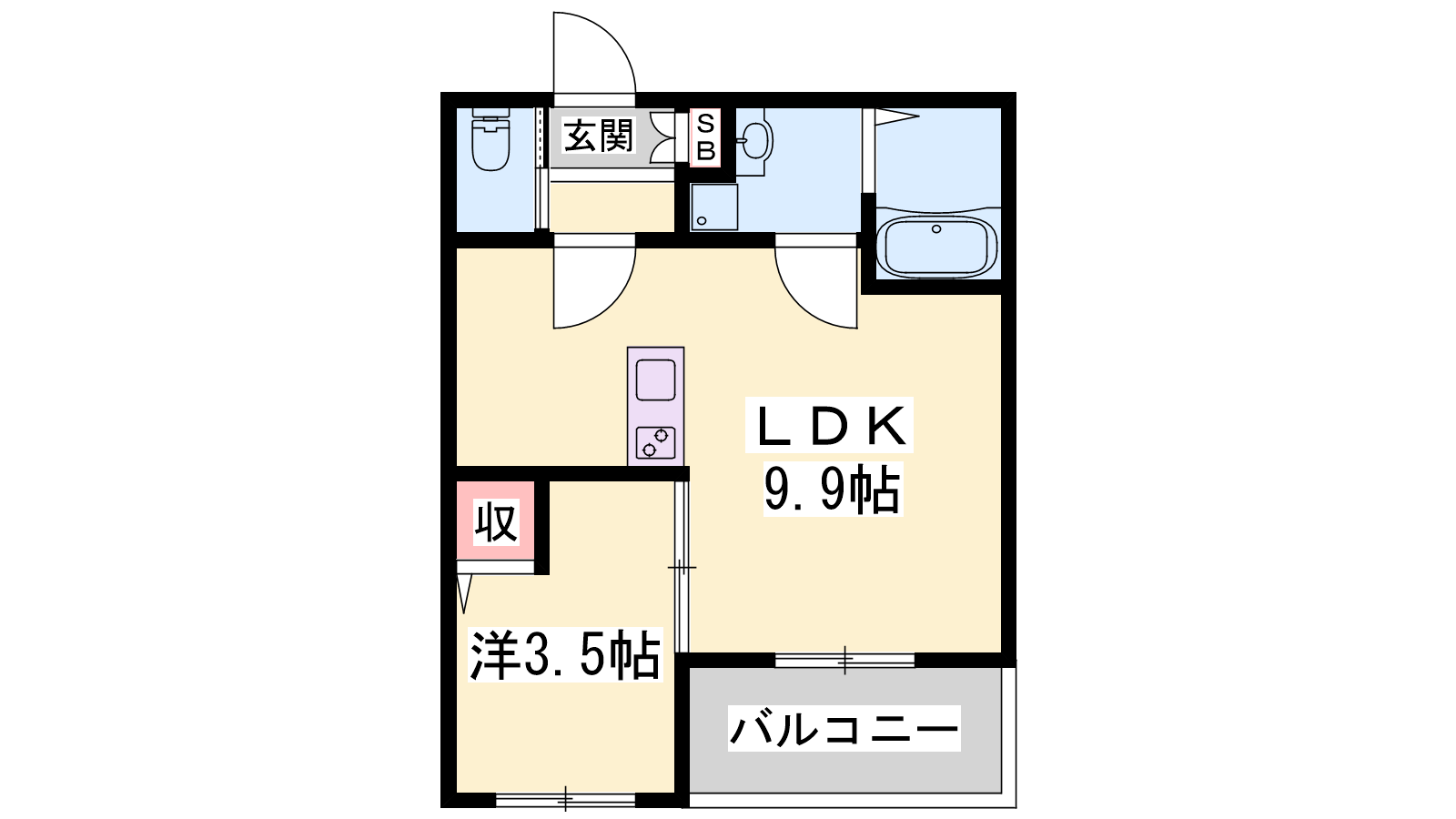 - LDK9.9帖、洋室3.5帖