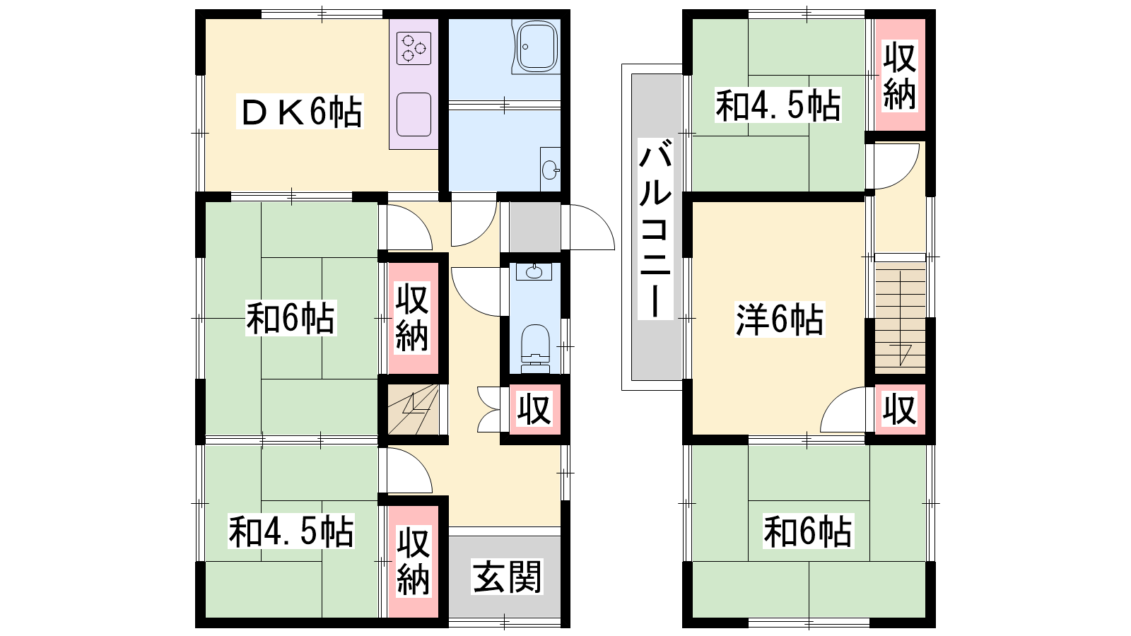 - DK6帖、和室6帖、和室4.5帖、和室4.5帖、洋室6帖、和室6帖