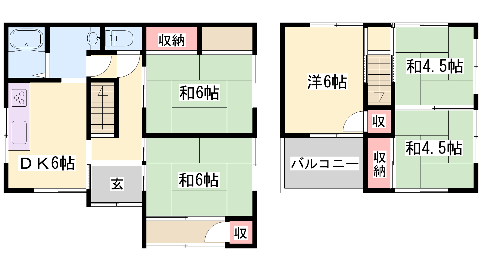 - LDK6帖、洋室6帖、和室6帖、和室4.5帖、和室4.5帖