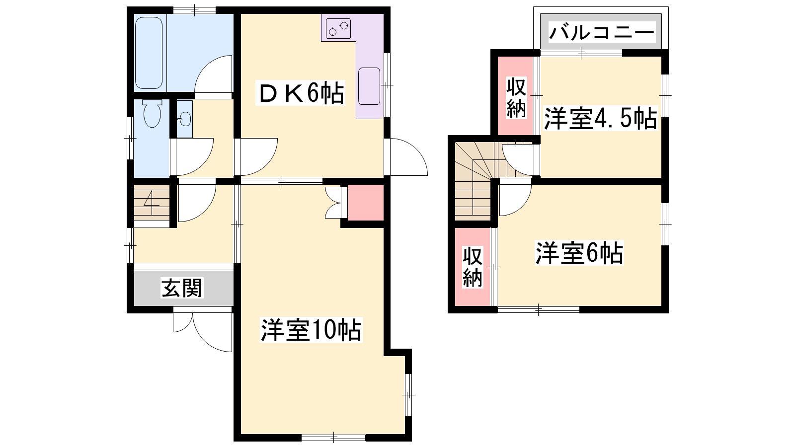 - 洋室10帖、DK6帖、洋室6帖、洋室4.5帖