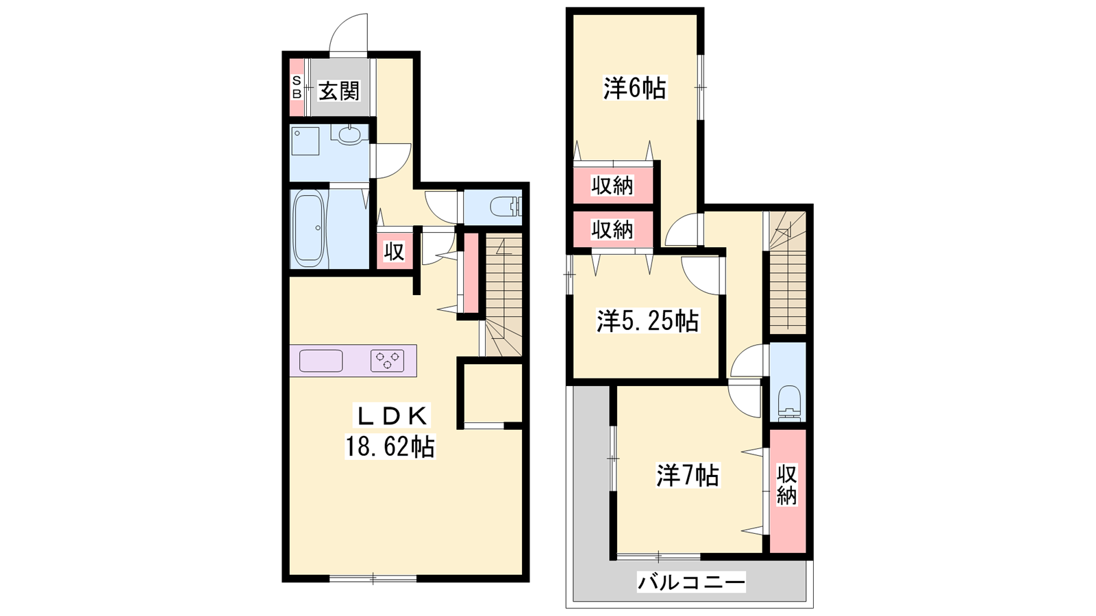 - LDK18.62帖、洋室7帖、洋室6帖、洋室5.25帖