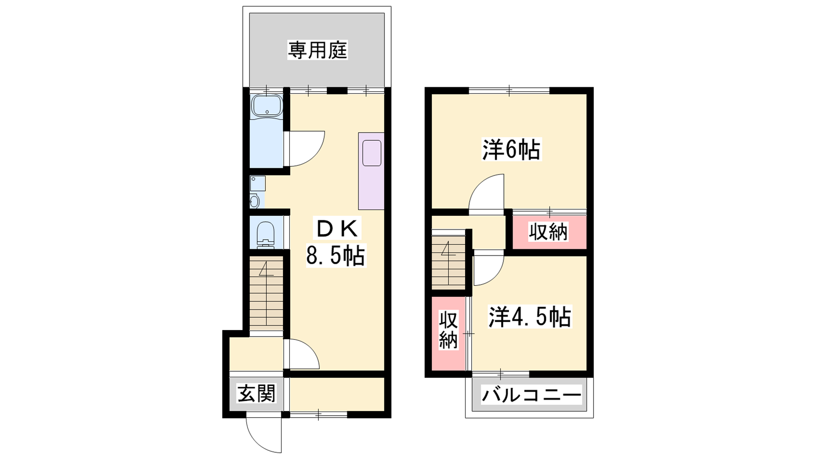 - DK8.5帖、洋室6帖、洋室4.5帖