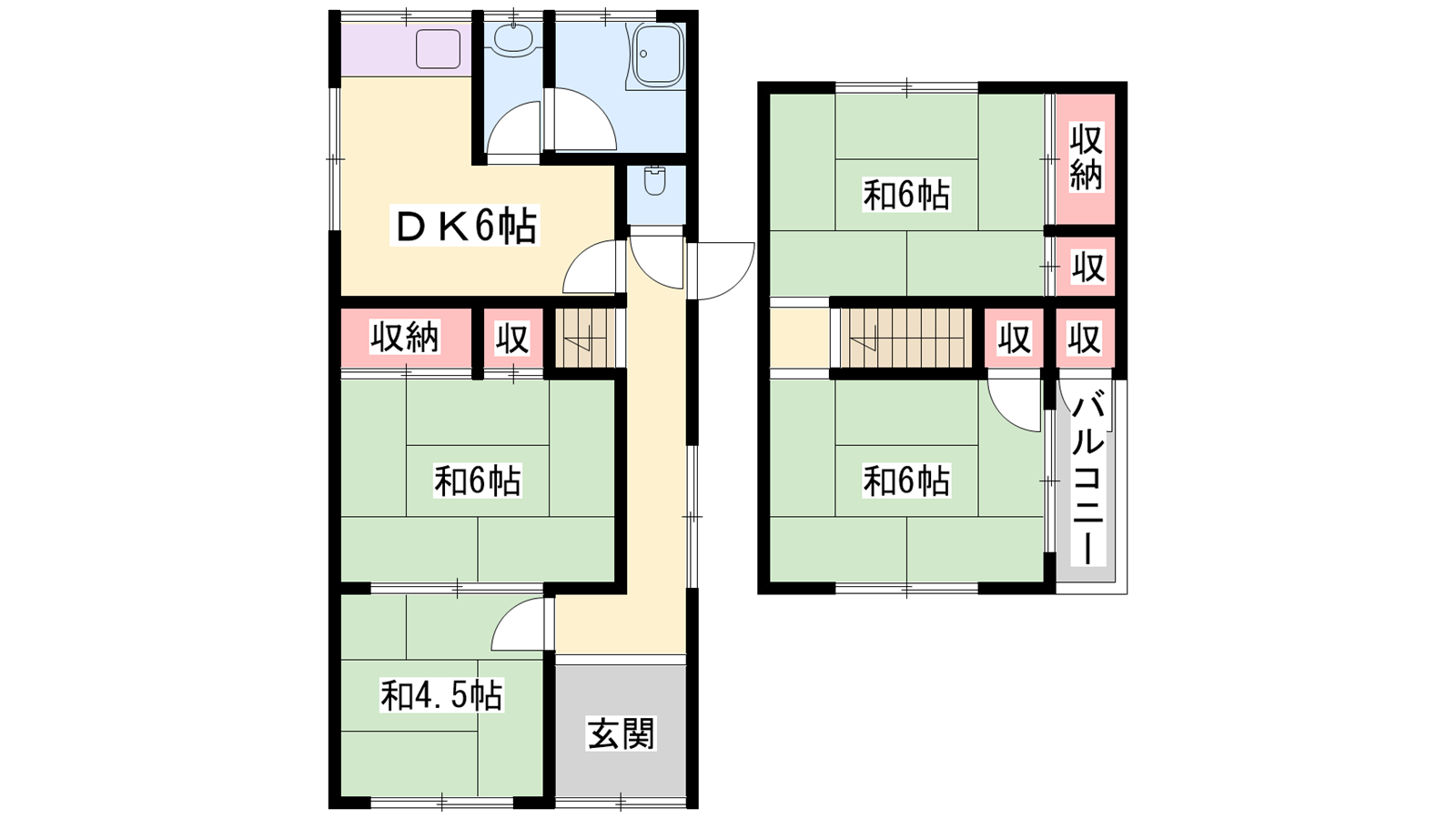 - DK8帖、和室6帖、和室6帖、和室6帖、和室4.5帖