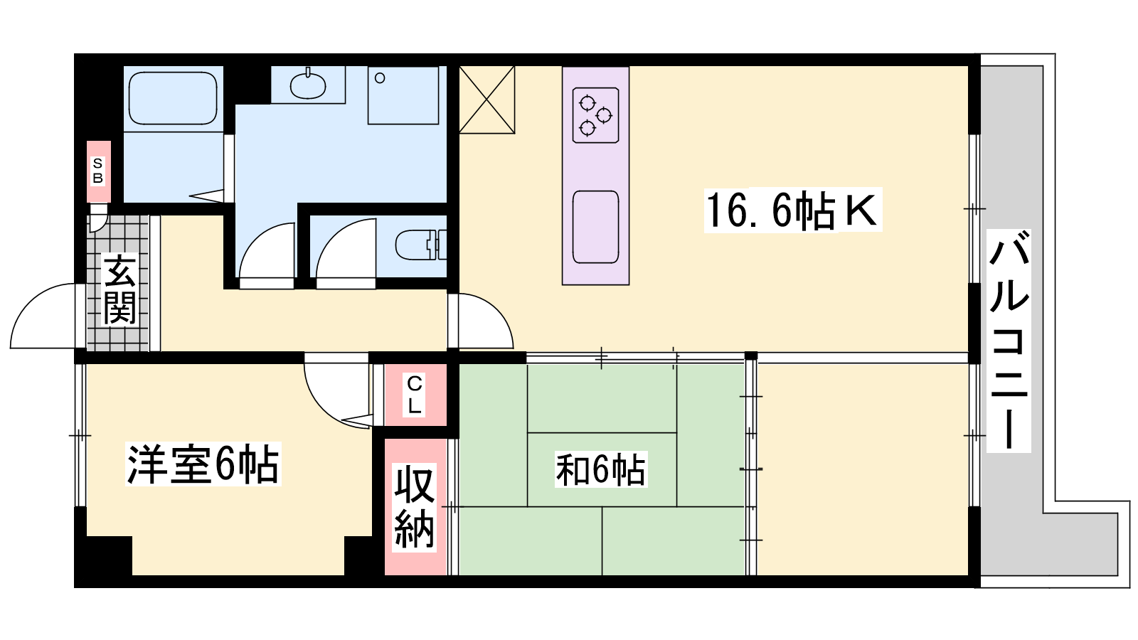 - LDK16.6帖、洋室6帖、和室6帖