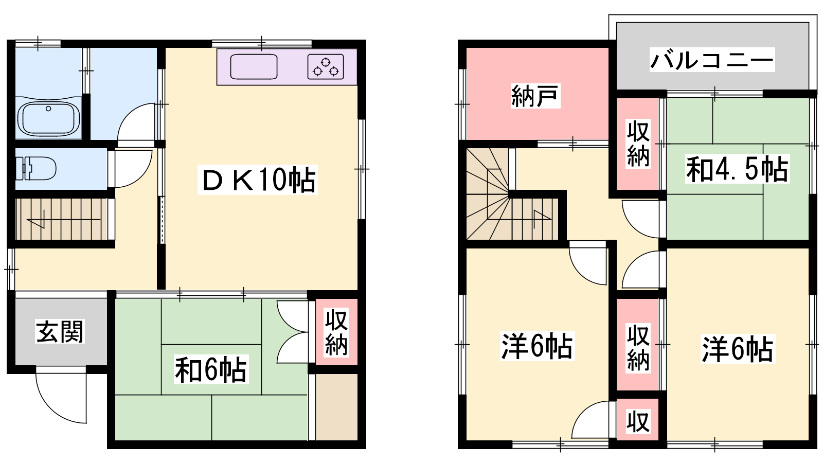 - DK10帖、和室6帖、洋室6帖、和室4.5帖、洋室6帖