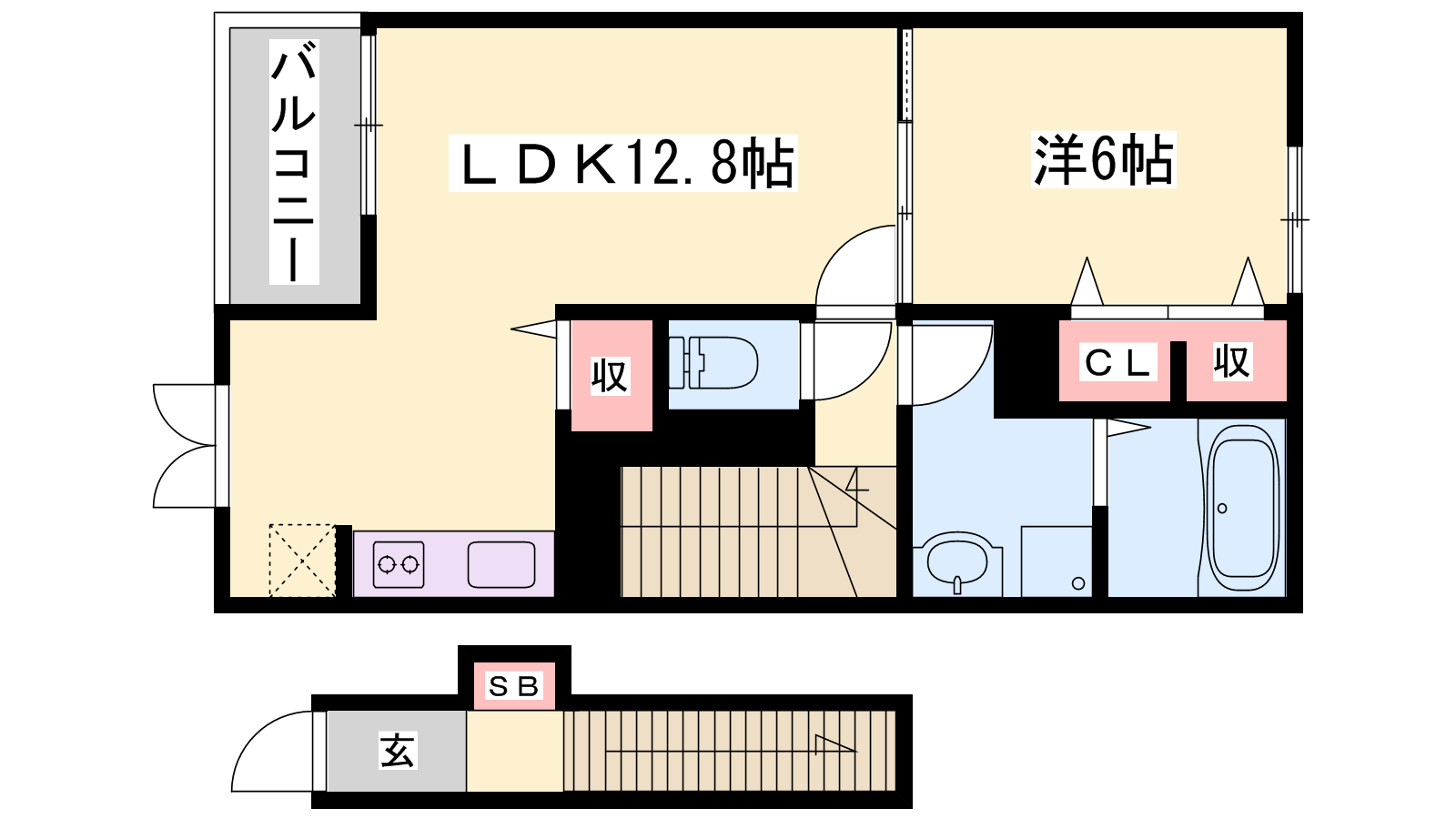 - LDK12.8帖、洋室6帖