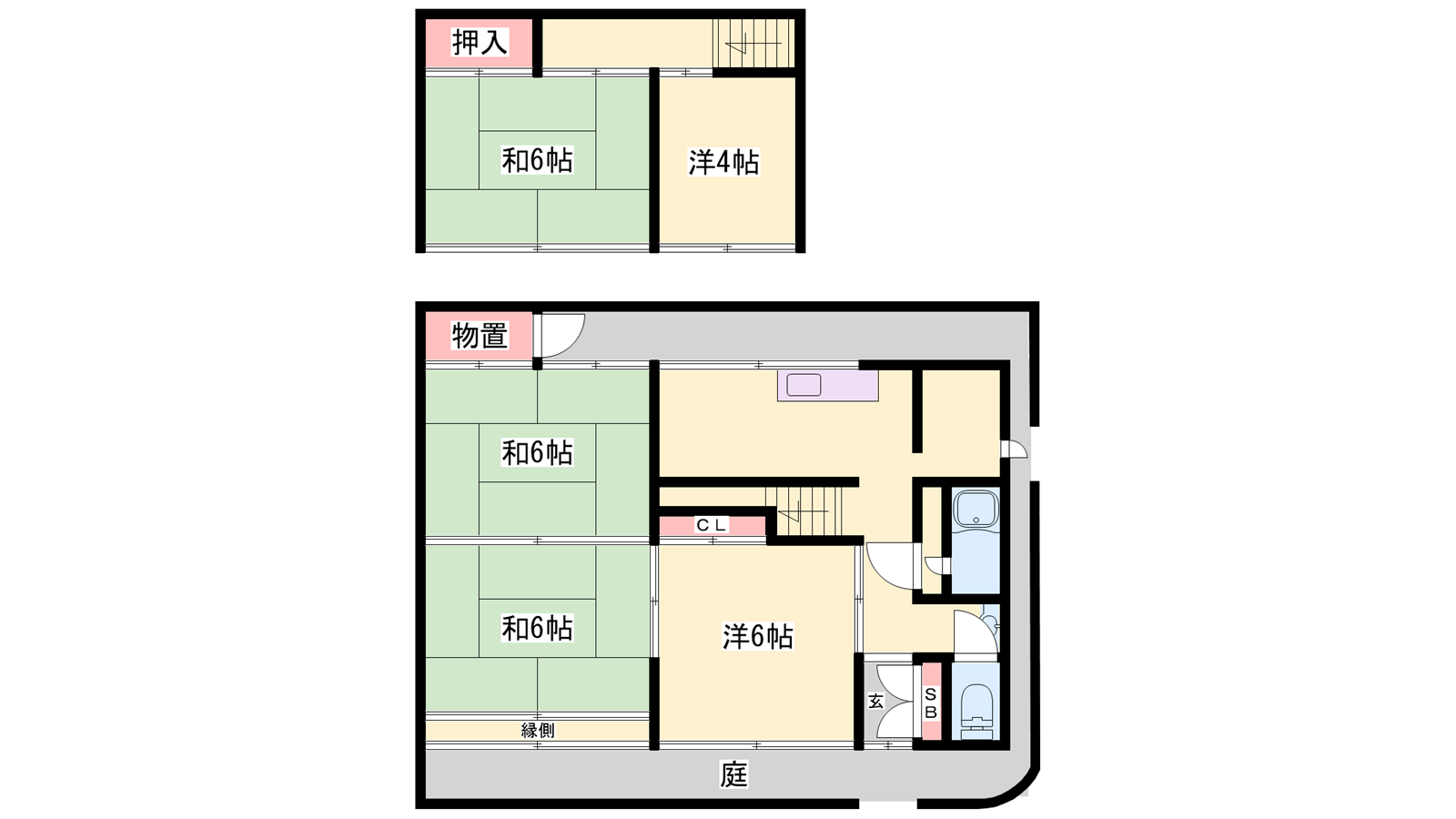 - DK4.5帖、洋室6帖、洋室4帖、和室6帖、和室6帖、和室6帖