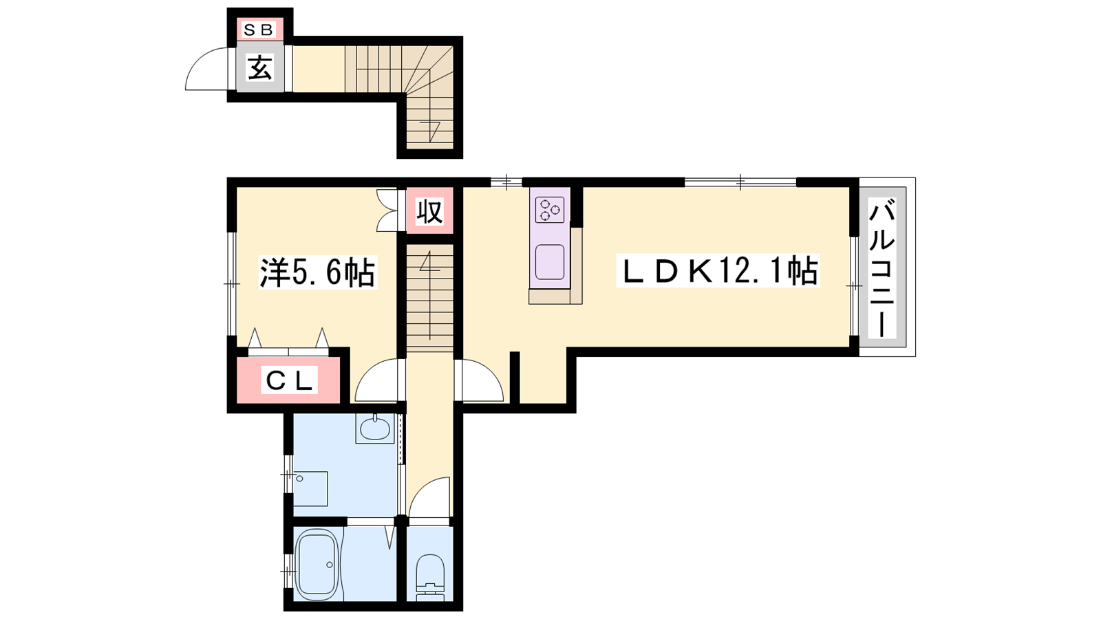 - LDK12.1帖、洋室5.6帖