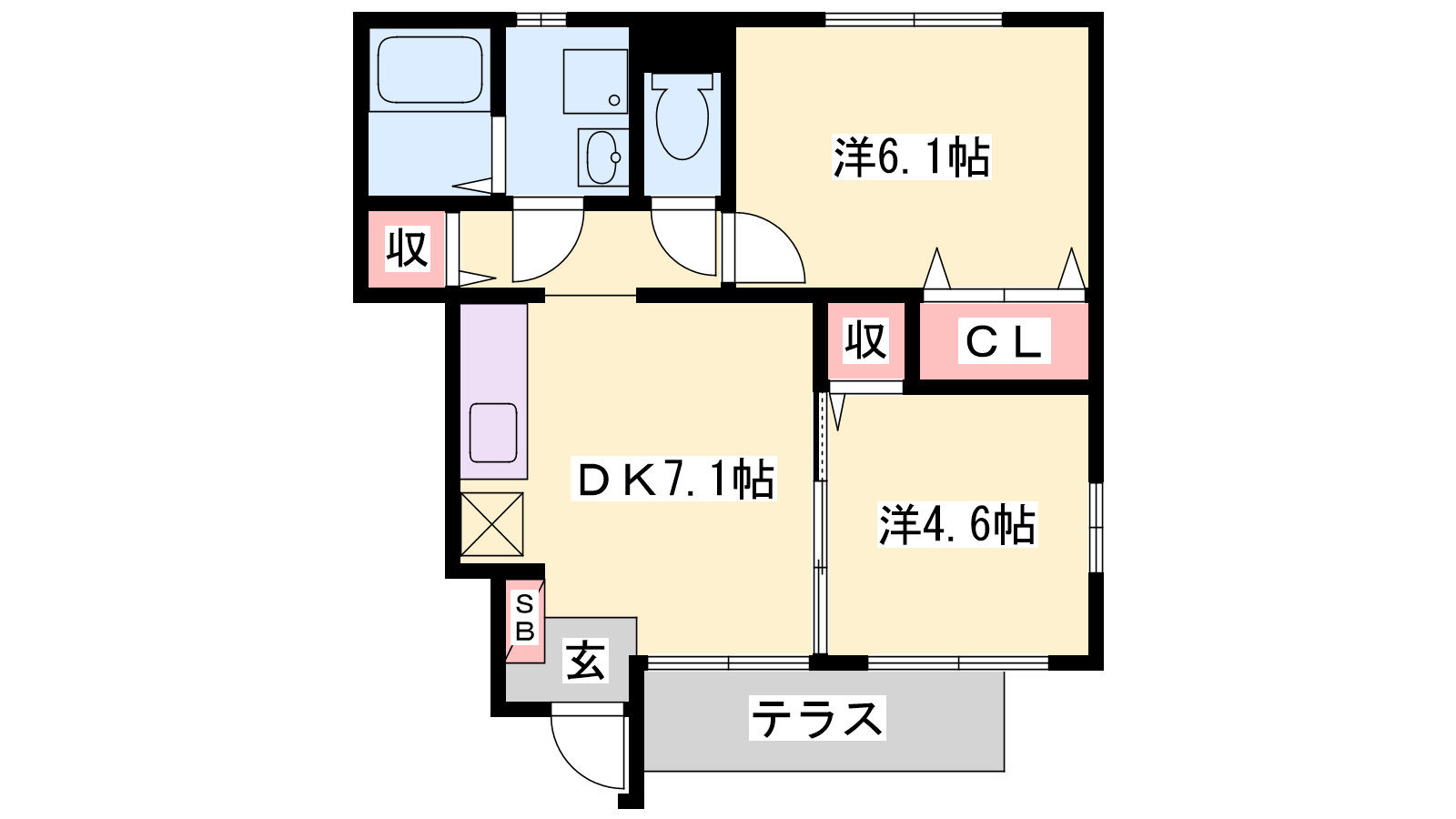 - DK7.1帖、洋室4.6帖、洋室6.1帖