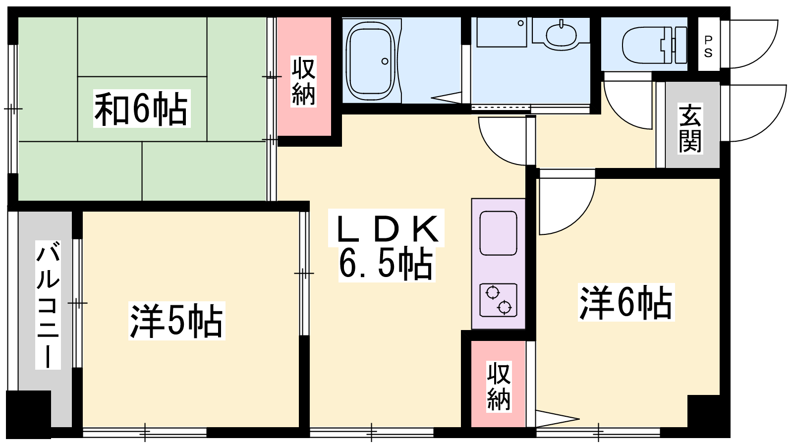 - DK6.5帖、洋室6帖、洋室5帖、和室6帖