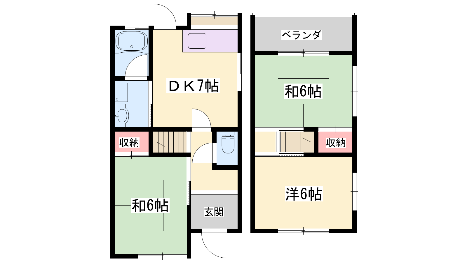 - DK7帖、洋室6帖、和室6帖、和室6帖
