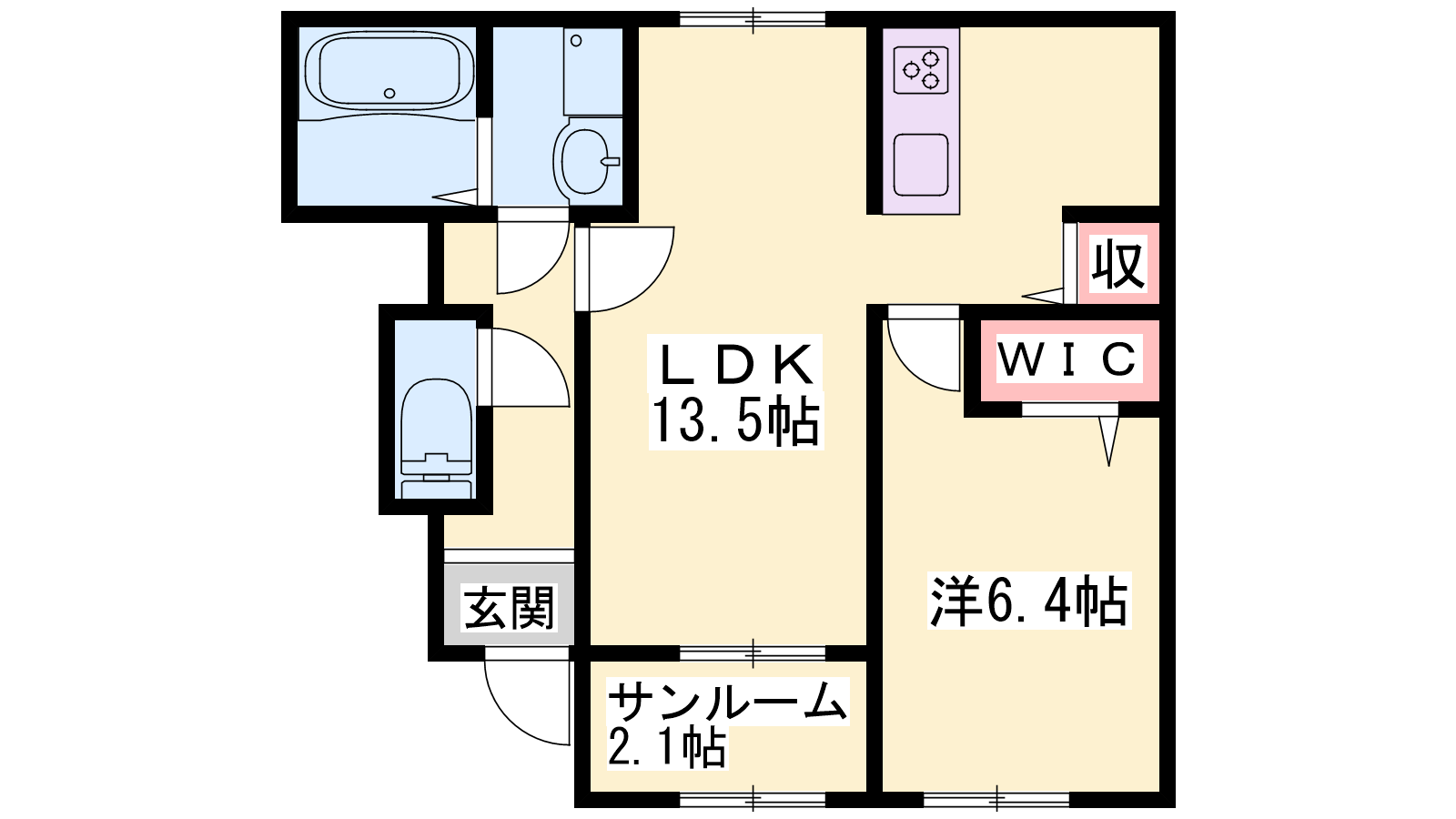 - LDK13.5帖、洋室6.4帖