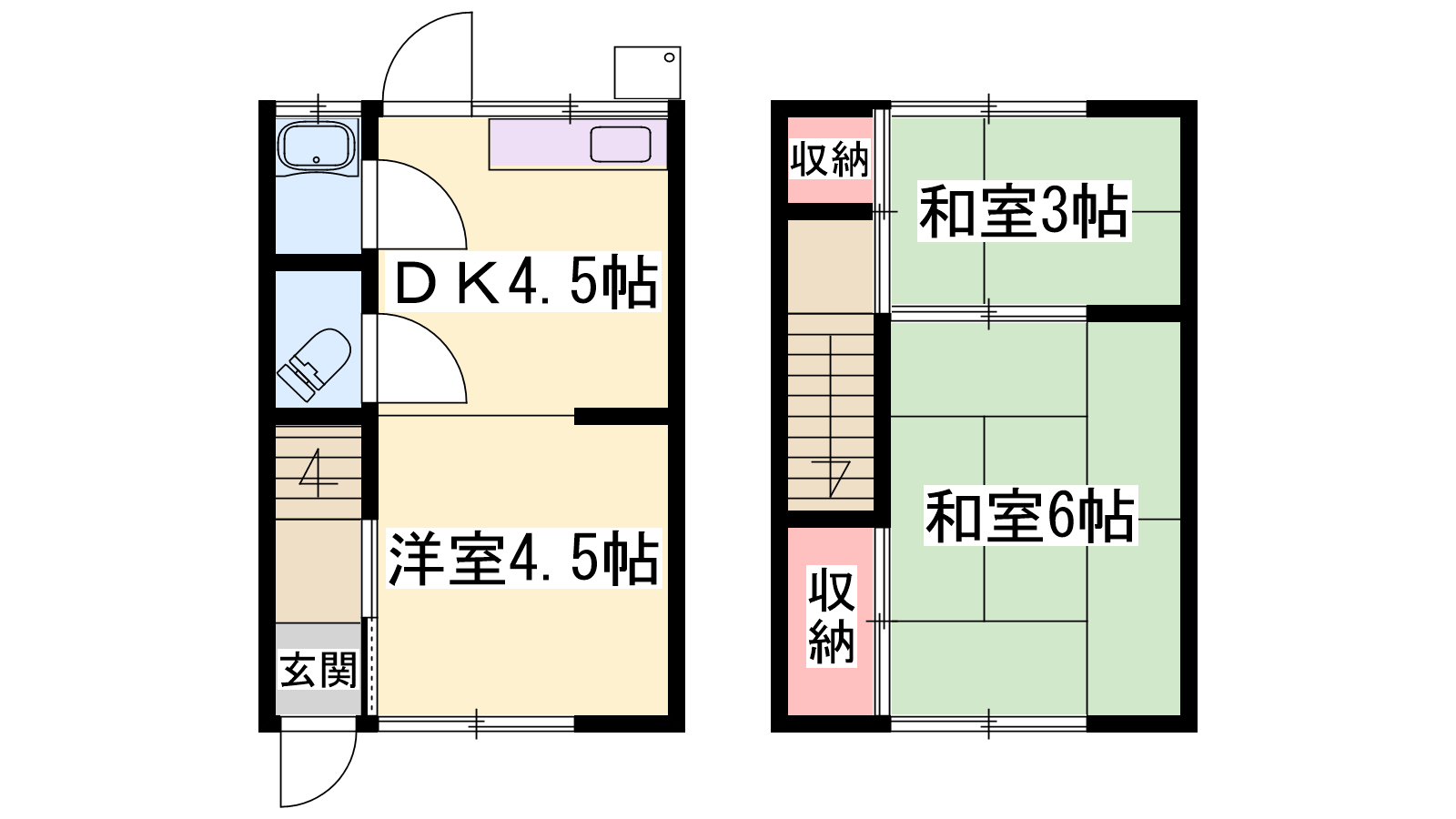 - DK4.5帖、和室6帖、和室3帖、洋室4.5帖