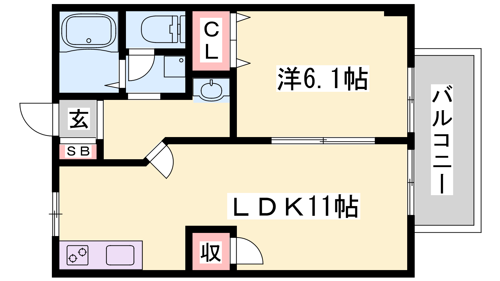 - LDK11帖、洋室6.1帖