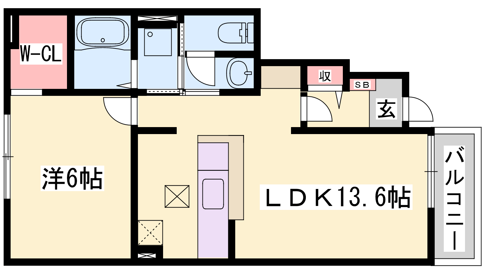 曽根駅徒歩6分、インターネット無料、都市ガス物件、南向きで日当たり良好。
