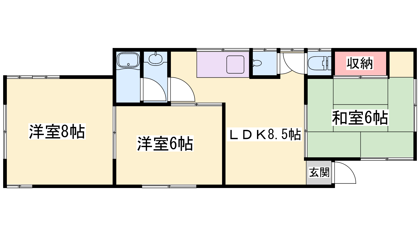 - LDK8.5帖、和室6帖、洋室8帖、洋室6帖