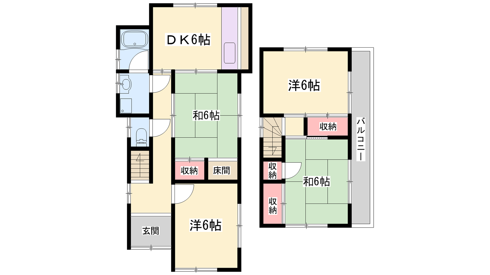- DK6帖、洋室6帖、洋室6帖、和室6帖、和室6帖
