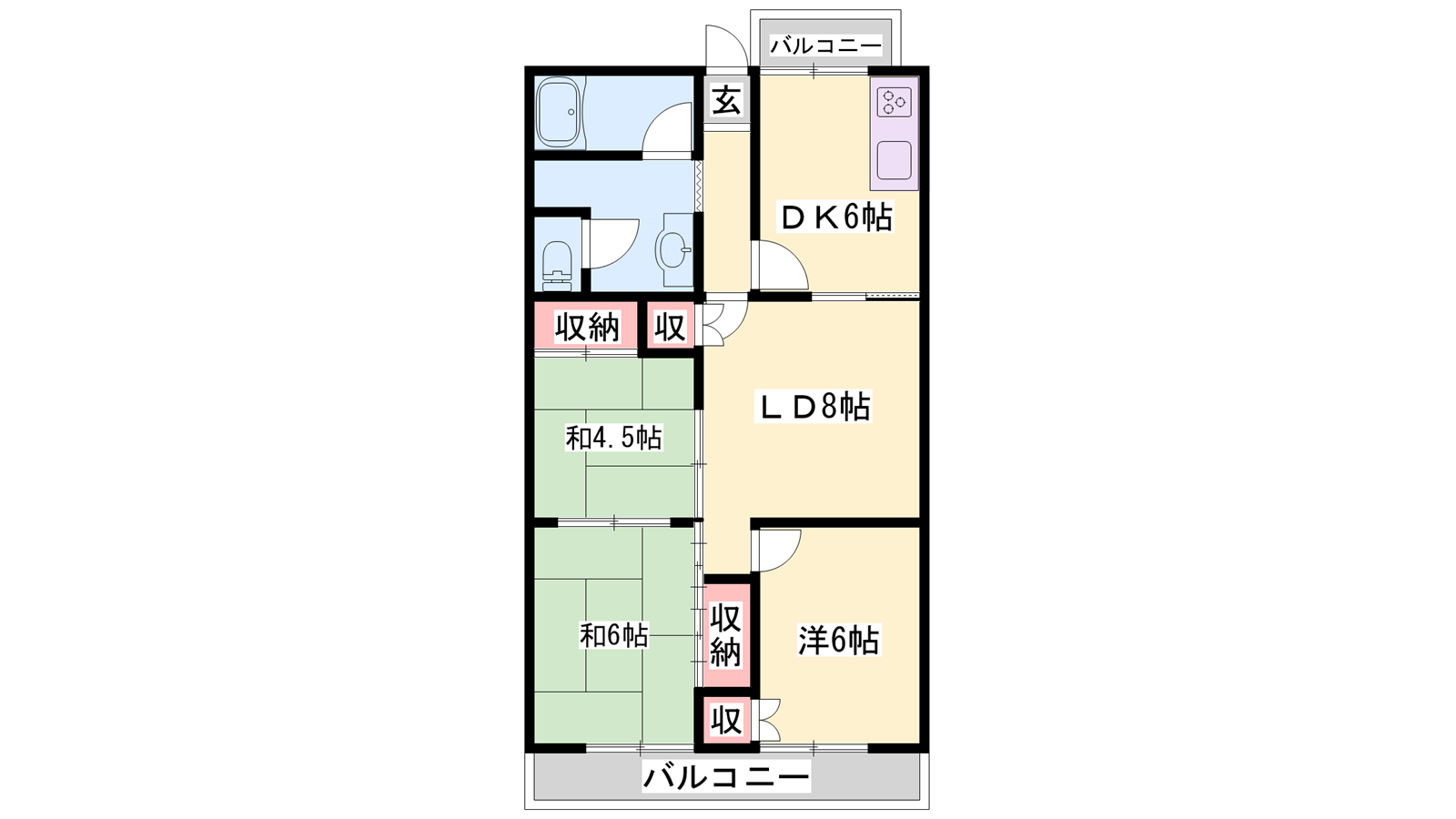 - LD8帖、DK6帖、洋室6帖、和室6帖、和室4.5帖