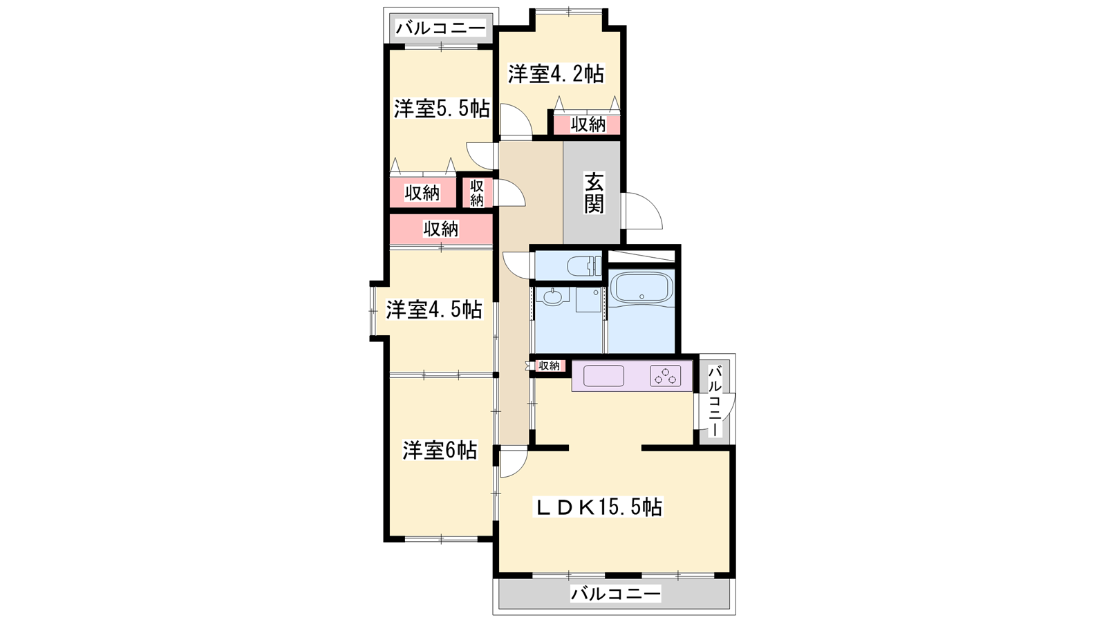 - LDK15.5帖、洋室6帖、洋室5.5帖、洋室4.5帖、洋室4.2帖