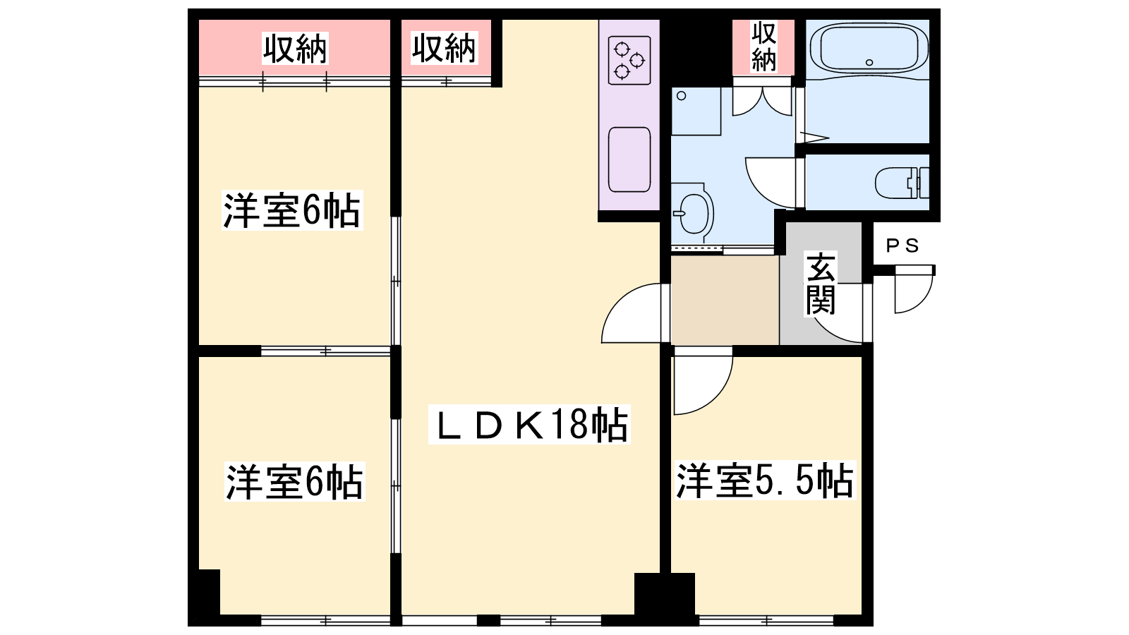 - LDK18帖、洋室6帖、洋室6帖、洋室5.5帖