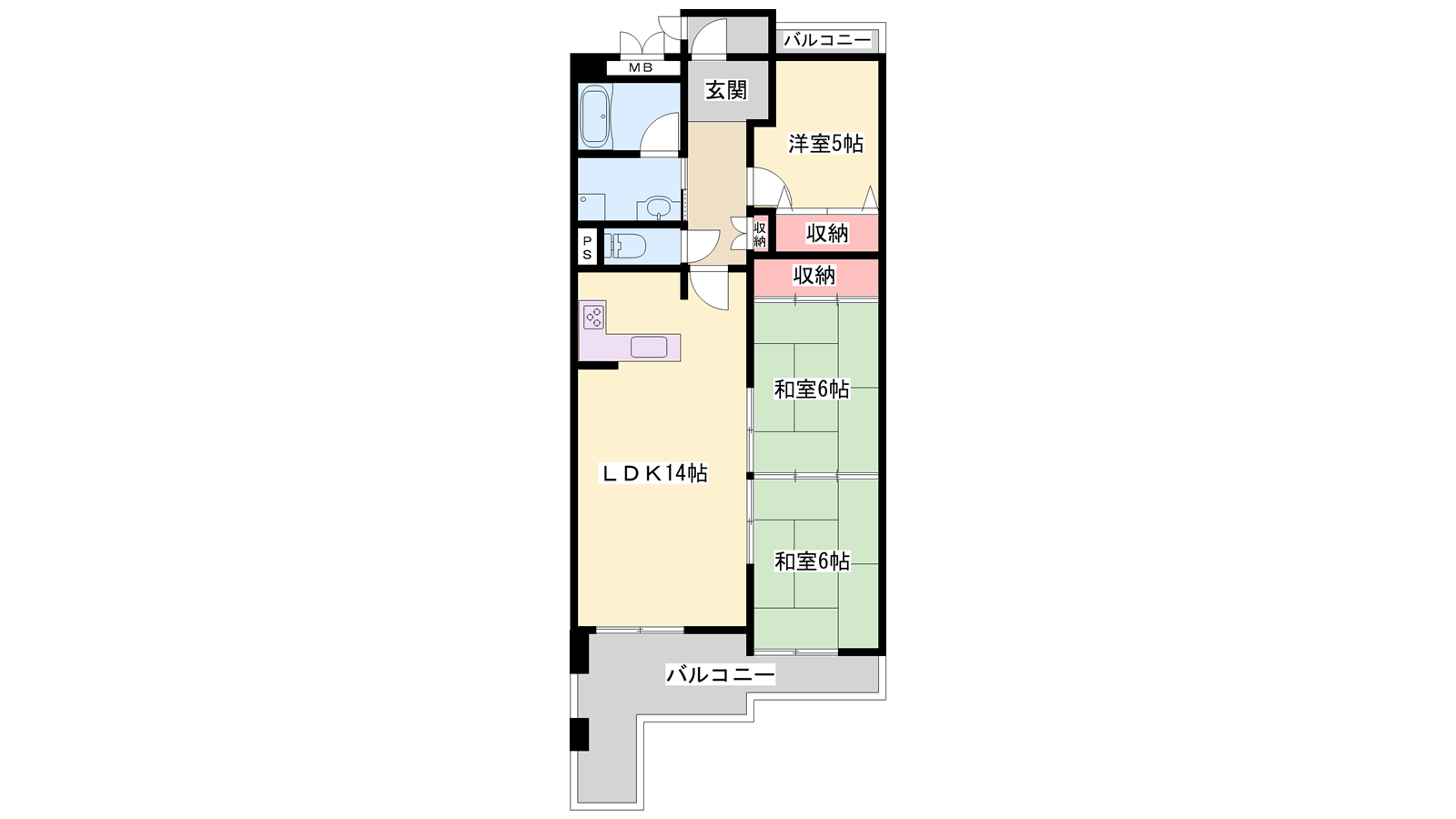 - LDK14帖、和室6帖、洋室6帖、洋室5帖