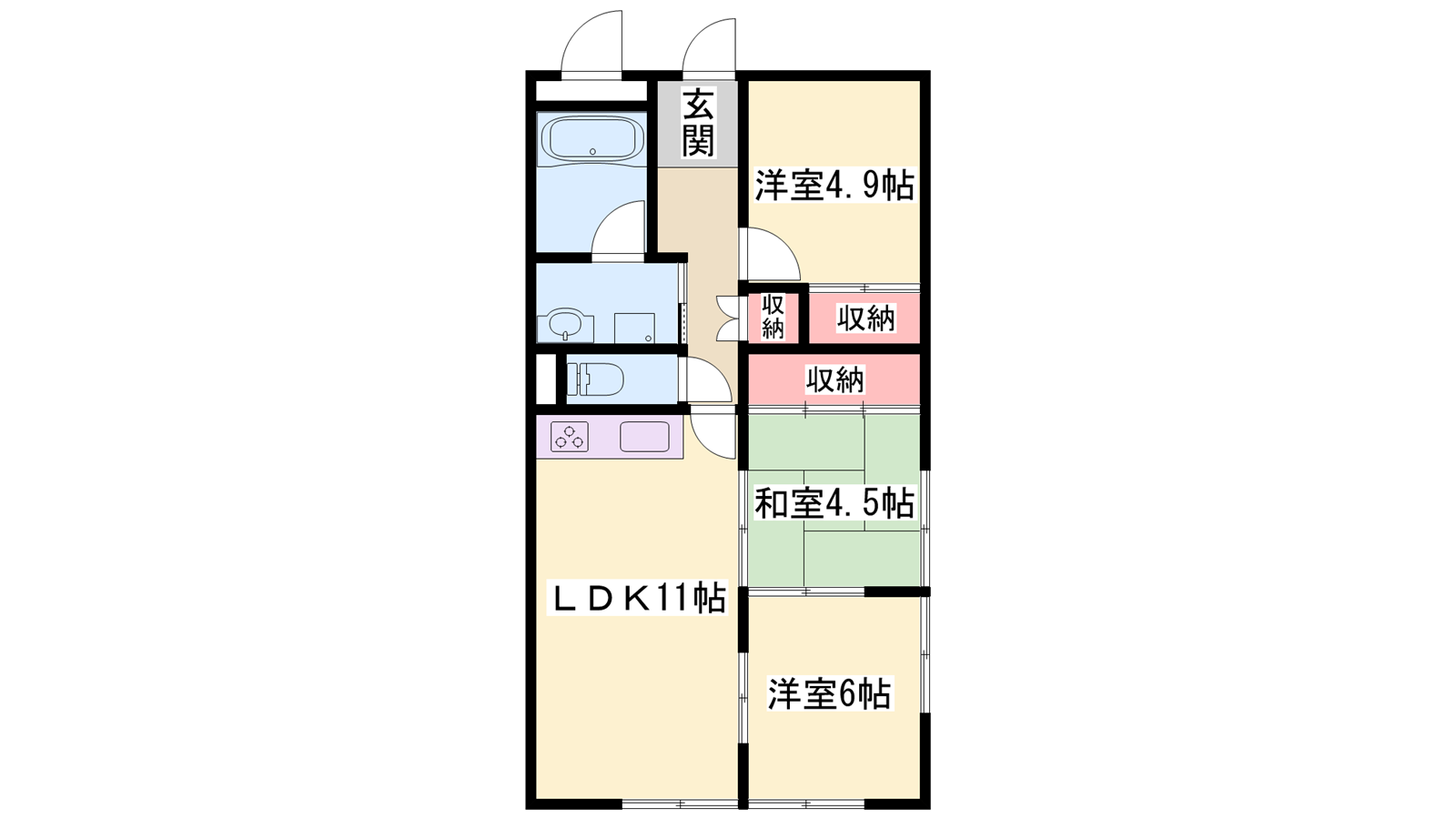 - LDK11帖、和室4.5帖、洋室6帖、洋室4.9帖