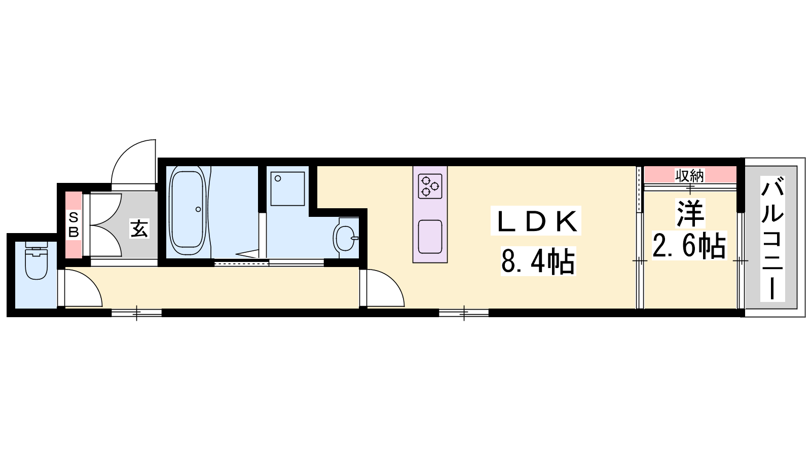 - LDK8.4帖、洋室2.6帖