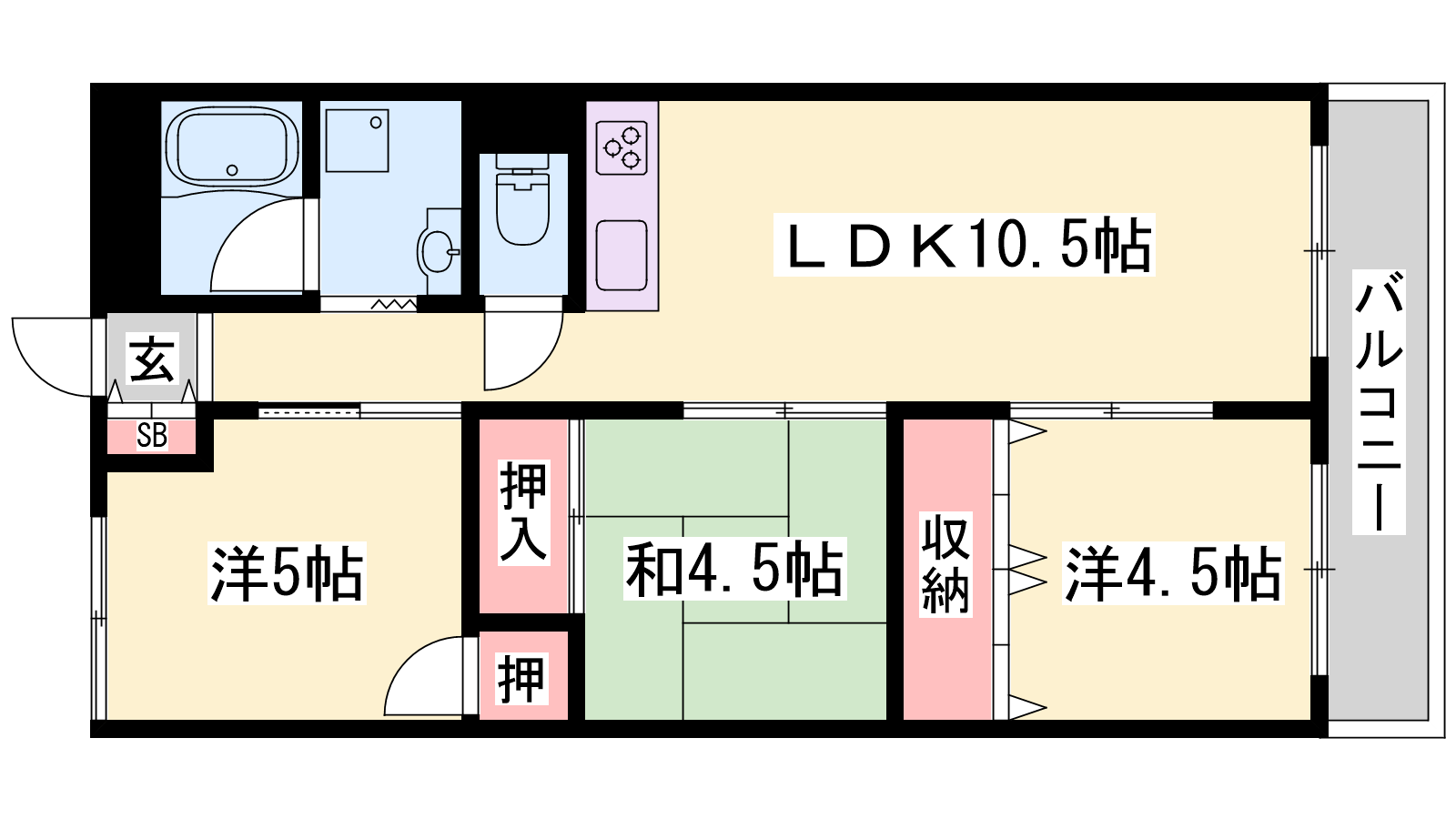 - LDK10.5帖、洋室5帖、洋室4.5帖、和室4.5帖