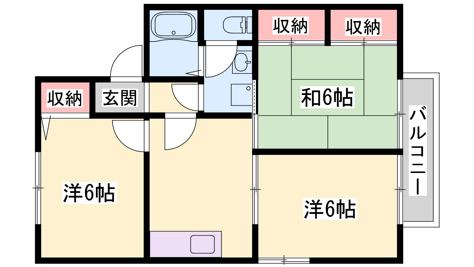 - DK6帖、洋室6帖、洋室6帖、和室6帖