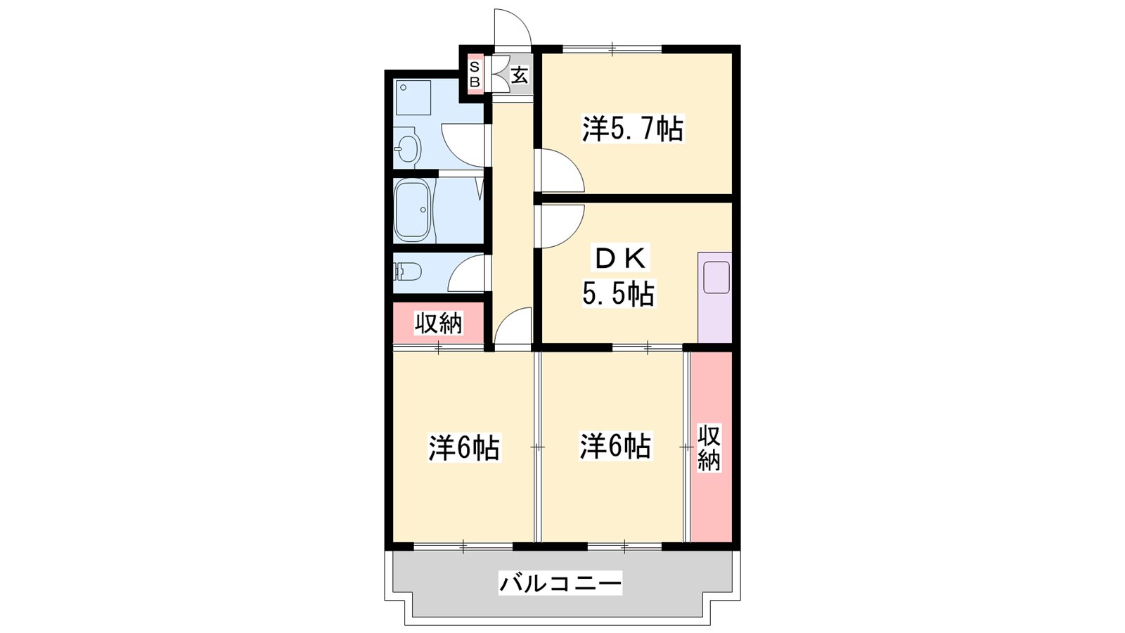 - DK5.5帖、洋室6帖、洋室6帖、洋室5.7帖