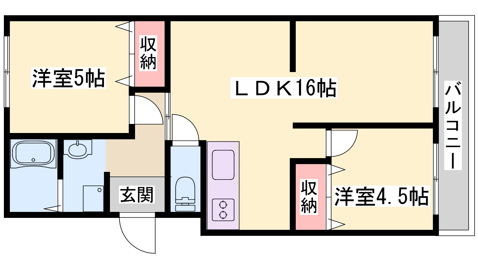 - LDK16帖、洋室5帖、洋室4.5帖