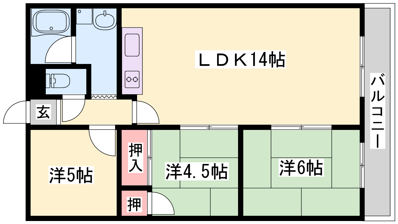 - LDK14帖、洋室5帖、和室6帖、和室4.5帖