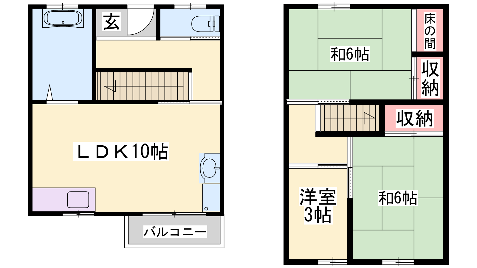 - LDK10帖、洋室6帖、洋室3帖、和室6帖