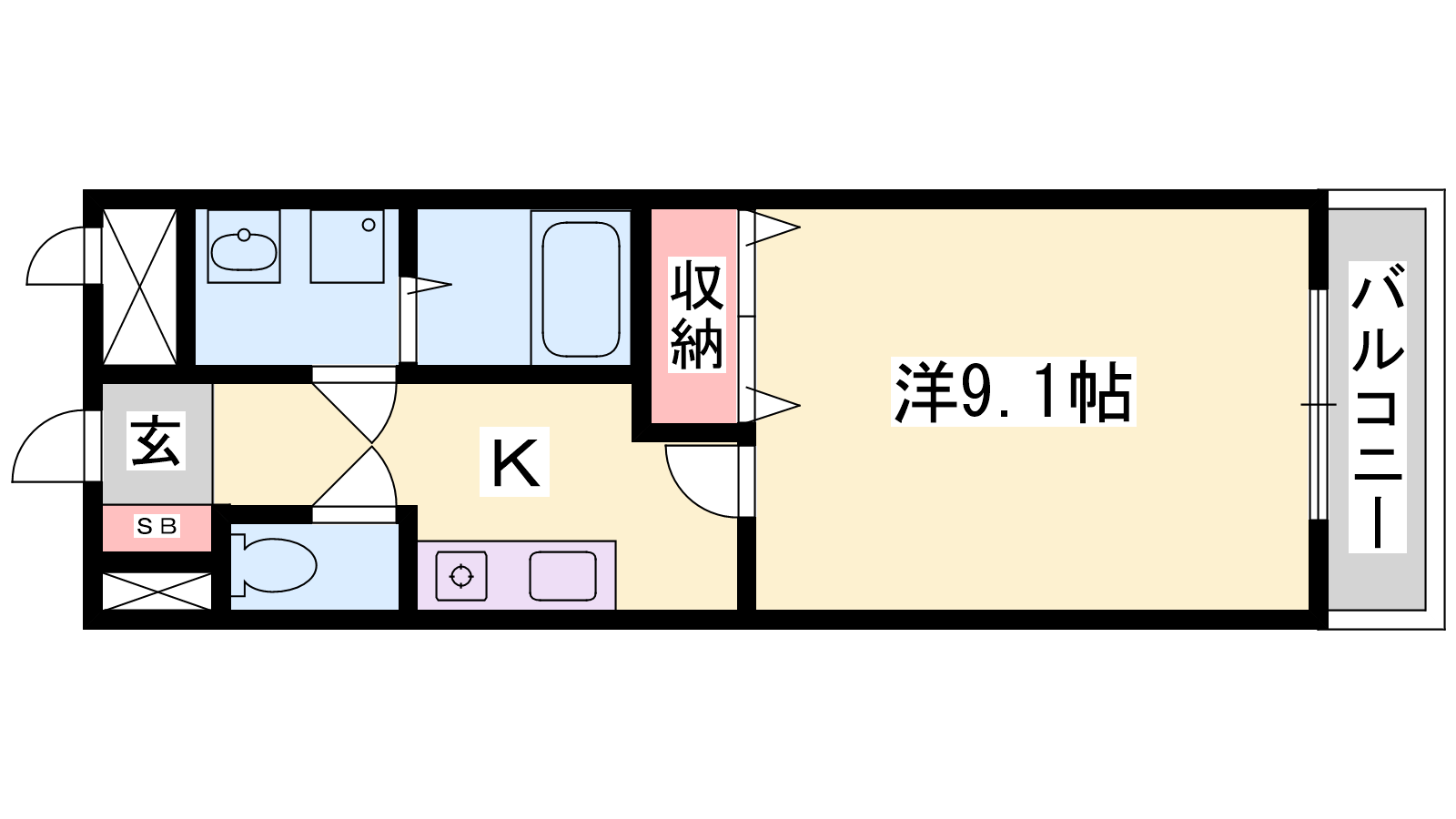 - K2.5帖、洋室9.1帖