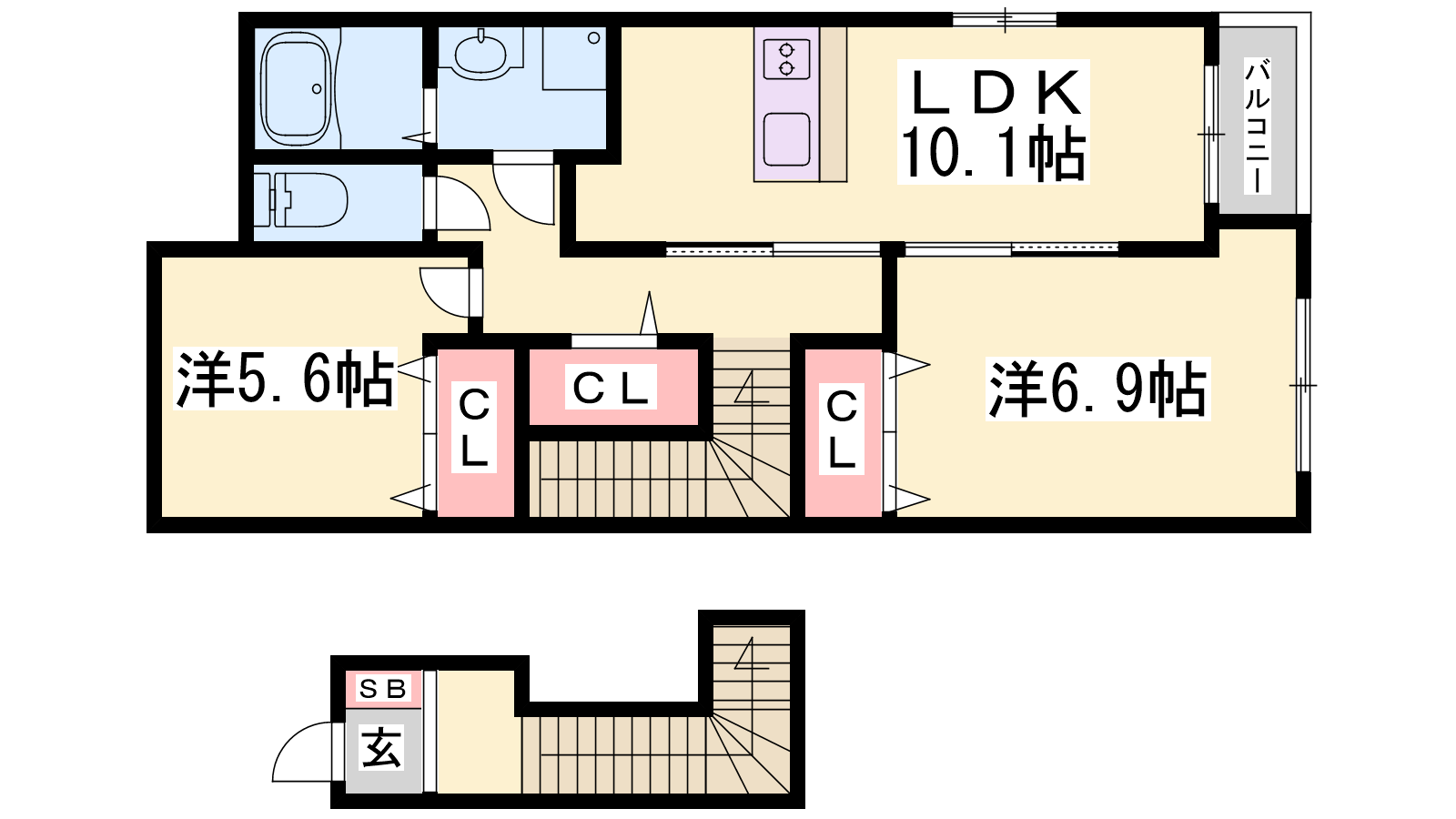 - LDK10.1帖、洋室6.9帖、洋室5.6帖