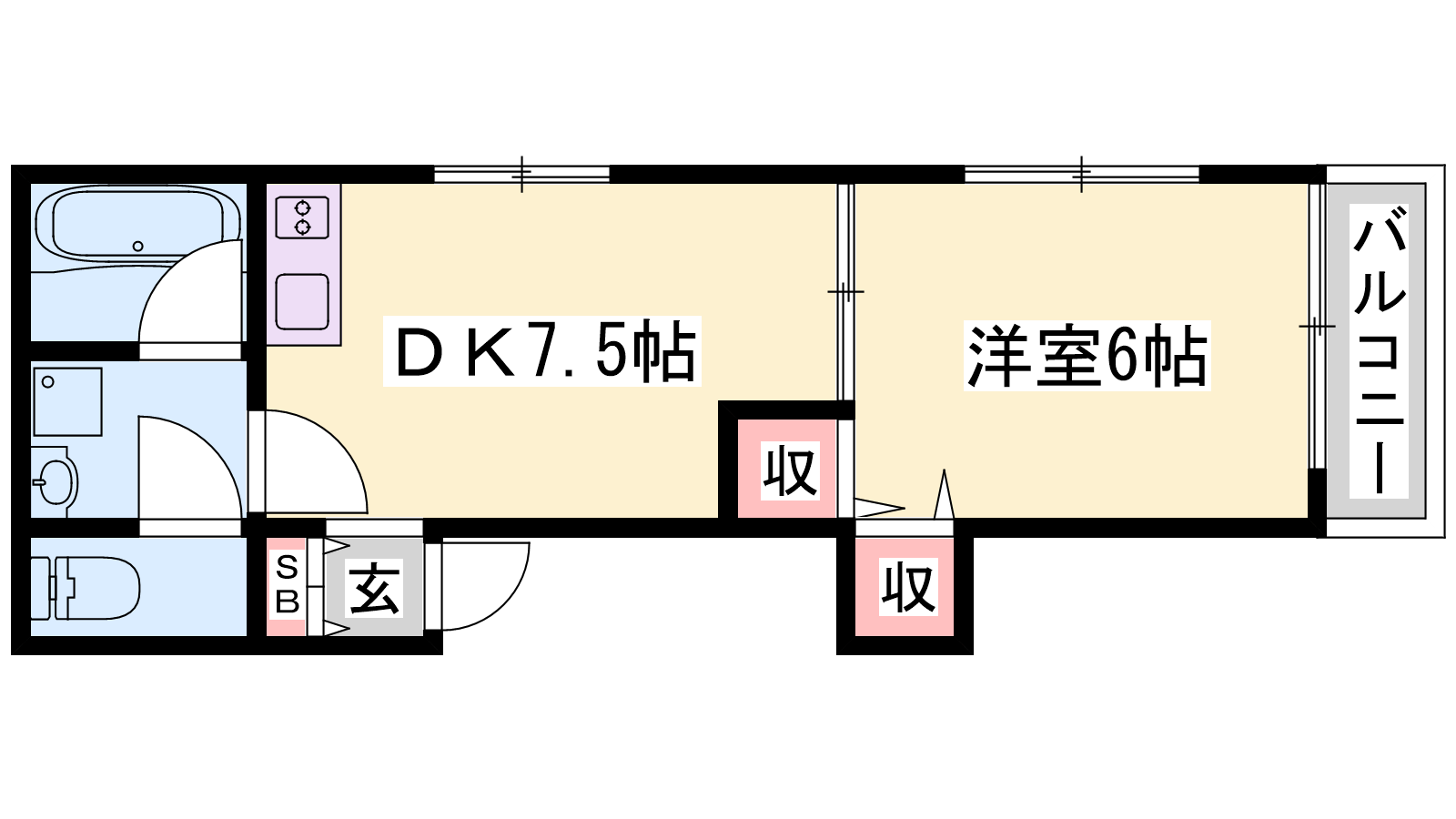 - DK7.5帖、洋室6帖