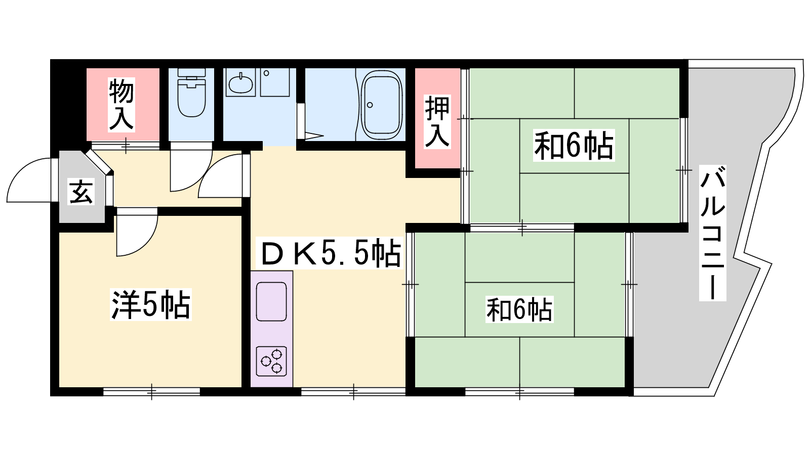 - LDK5.5帖、洋室5帖、和室6帖、和室6帖