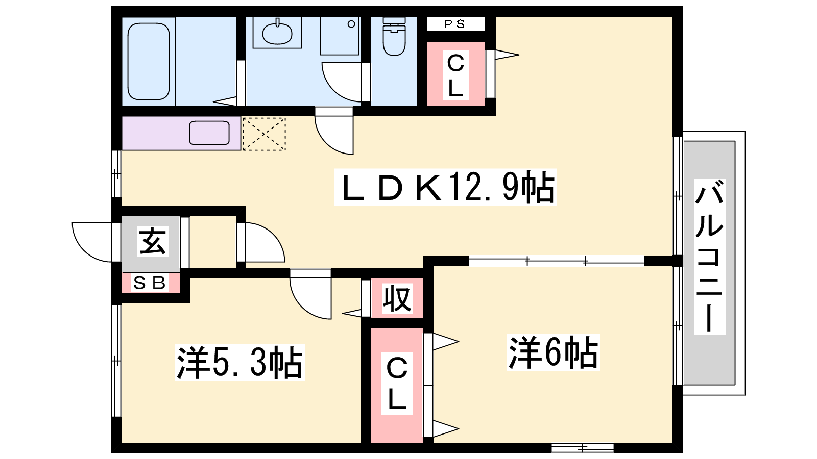 - LDK12.9帖、洋室6帖、洋室5.3帖