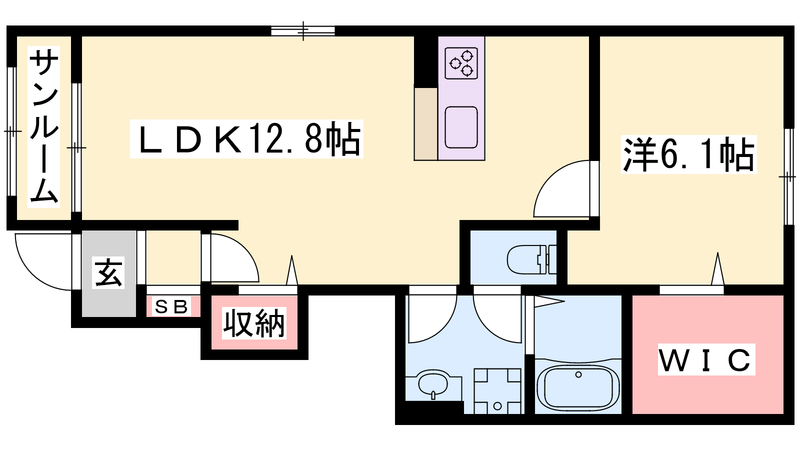 - LDK12.8帖、洋室6.1帖