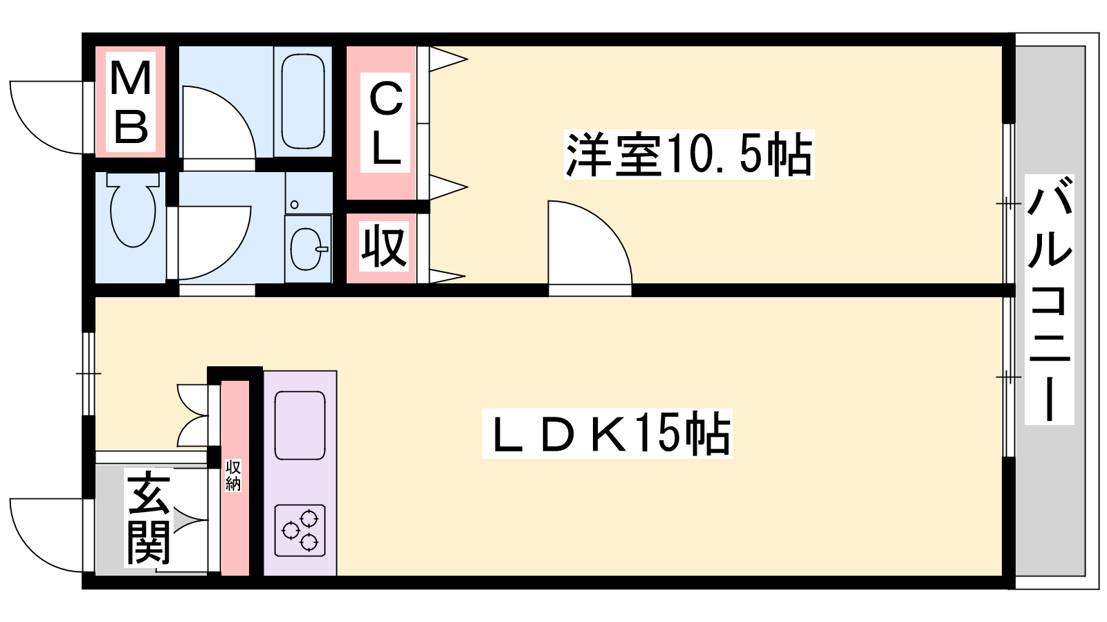 - LDK15帖、洋室10.5帖