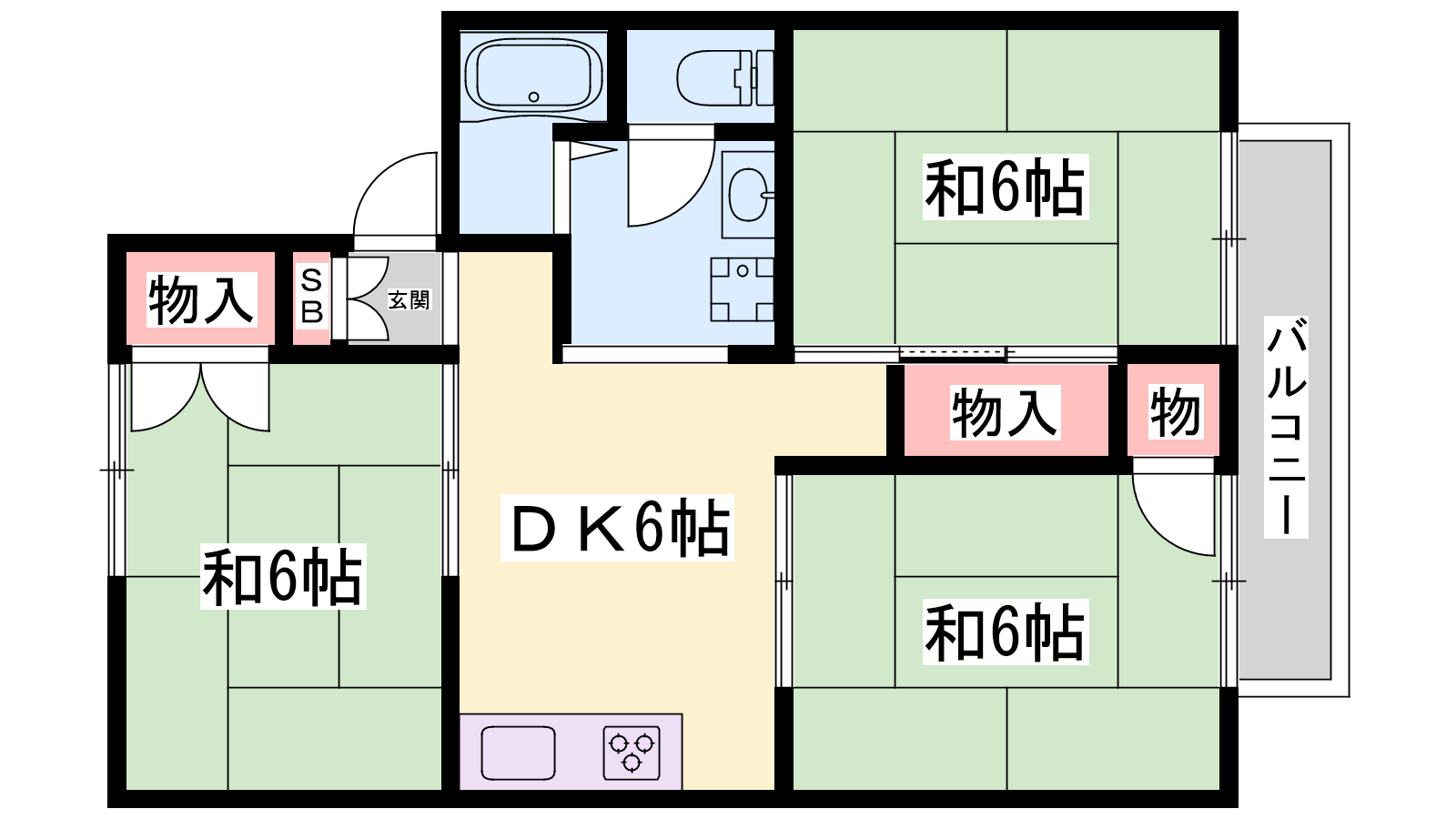 - DK6帖、和室6帖、和室6帖、和室6帖