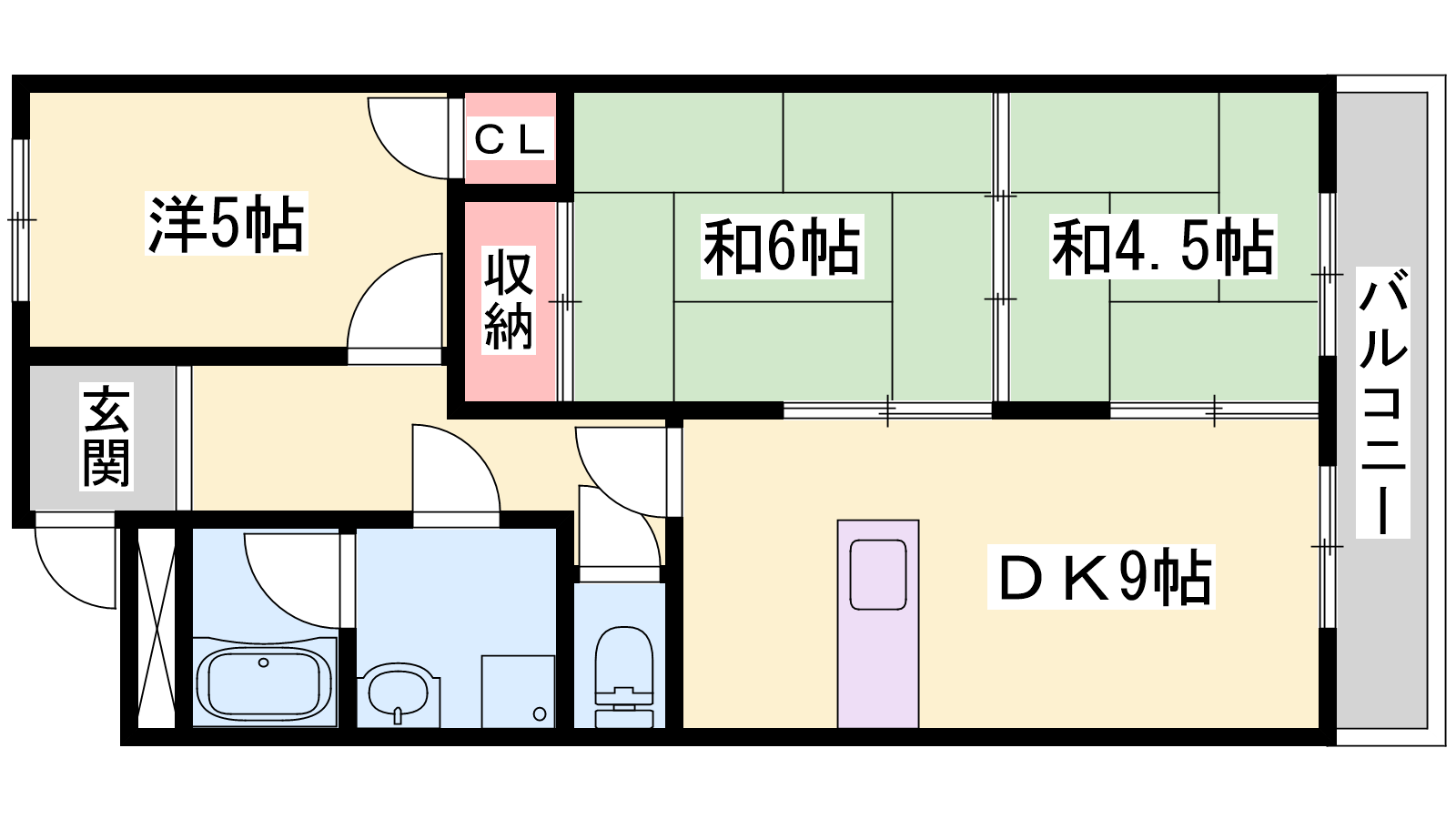 - DK9帖、洋室5帖、和室6帖、和室4.5帖