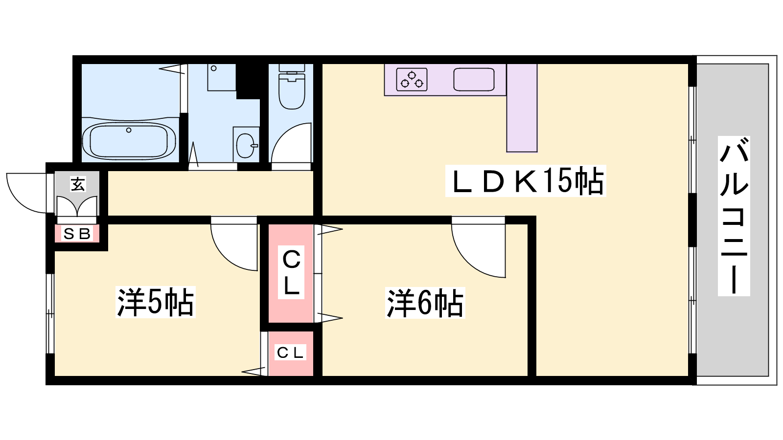 - LDK15帖、洋室6帖、洋室5帖