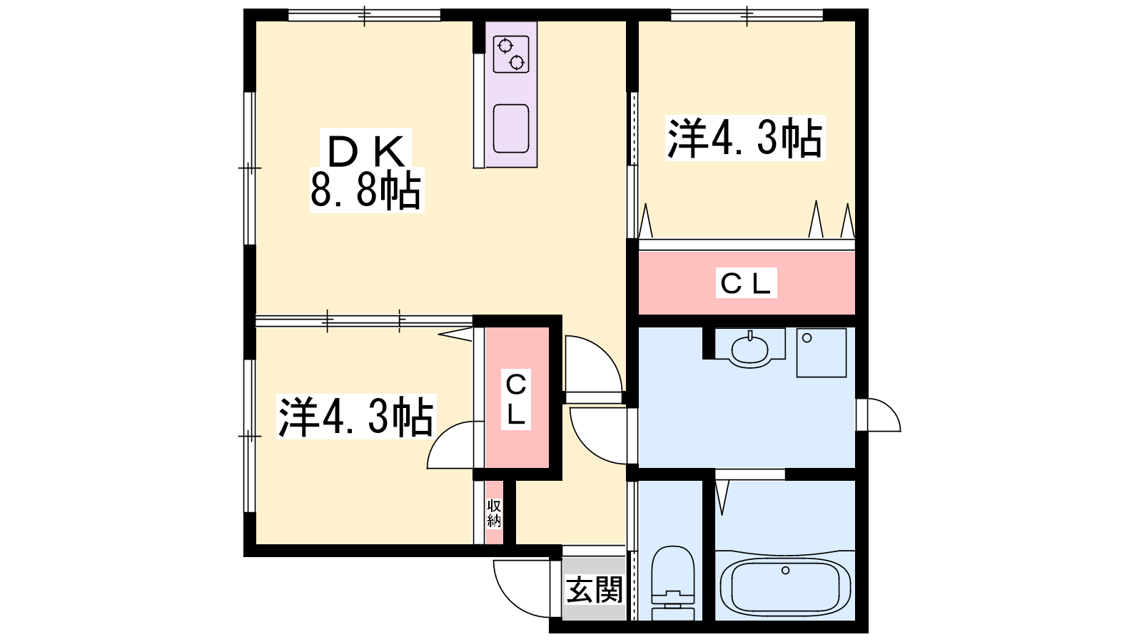 - DK8.8帖、洋室4.3帖、洋室4.3帖