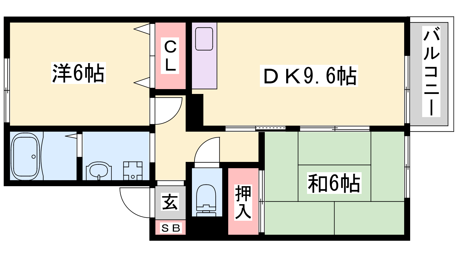 - DK9.3帖、洋室6帖、和室6帖